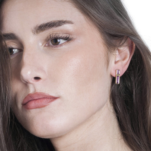 Earrings with amethyst with unique cuts in sterling silver with 18k gold vermeil