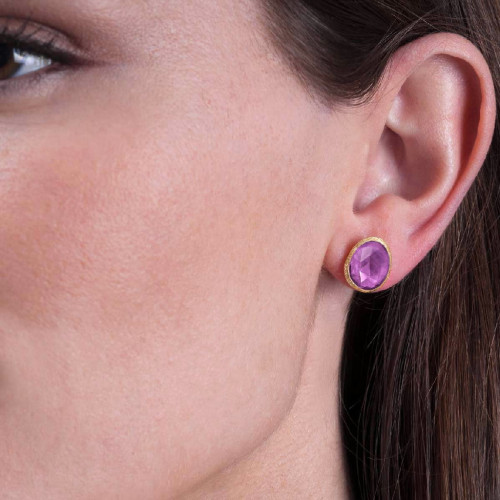 Amethyst stud earrings with unique cut in sterling silver with 18k gold vermeil