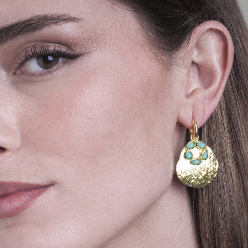 La colección incluye una cuidada selección de pendientes, desde diseños minimalistas y finos hasta modelos más voluminosos y llamativos, pensados para adaptarse a todos los estilos. También encontrarás collares con motivos florales y anillos delicados, todos engastados con piedras naturales como la turmalina multicolor, la apatita, la espectrolita y la amazonita.
